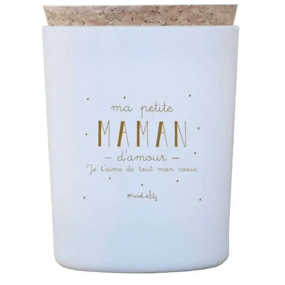 Bougie artisanale éco-responsable, 100% végétale « Maman d’Amour » à la tendre senteur de la fleur de coton, fabriquée en France par notre artisan cirier dans les règles de l’art.